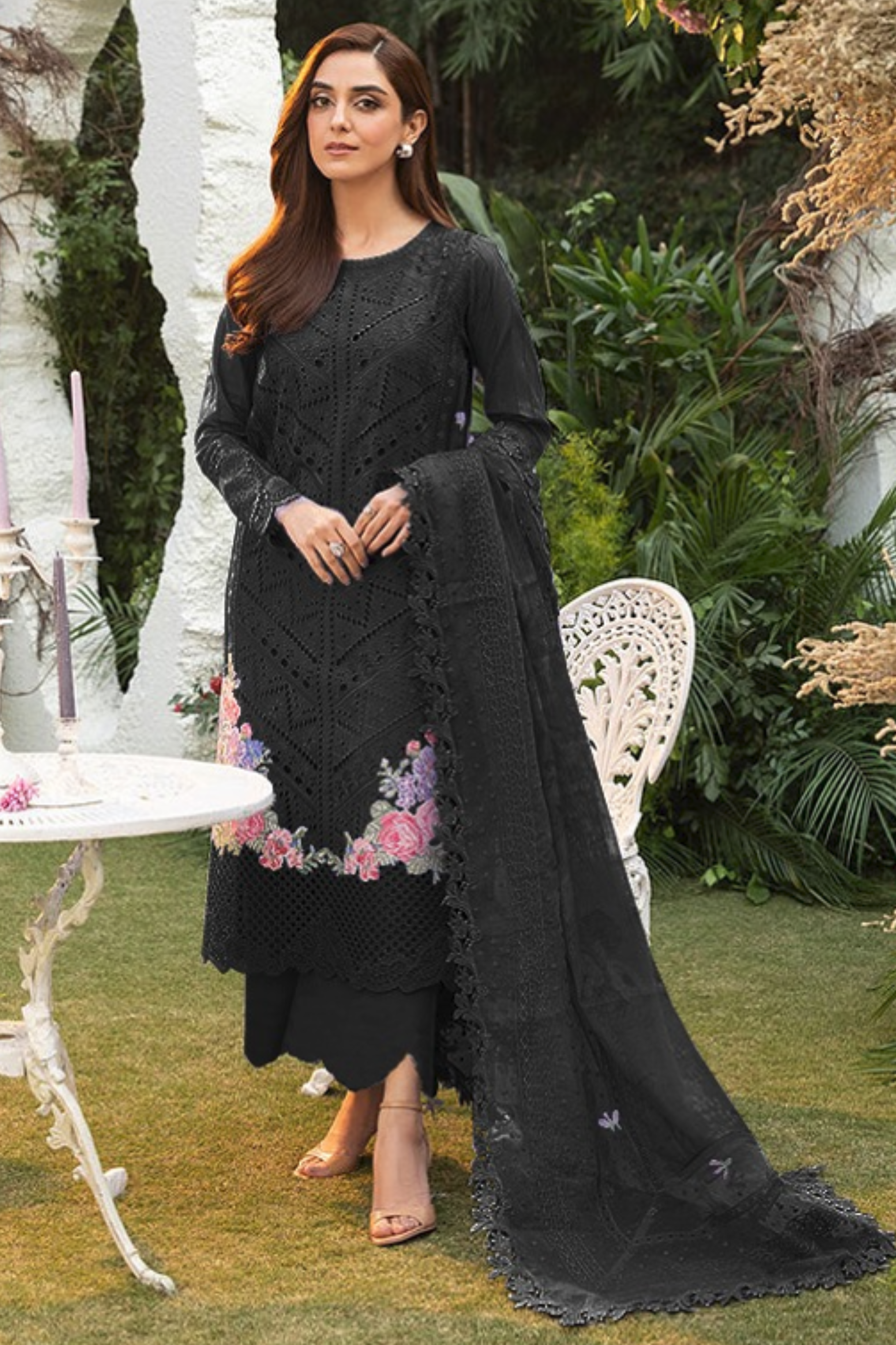 • Luxury Embroidered Pure Bamber Chiffon Dupatta