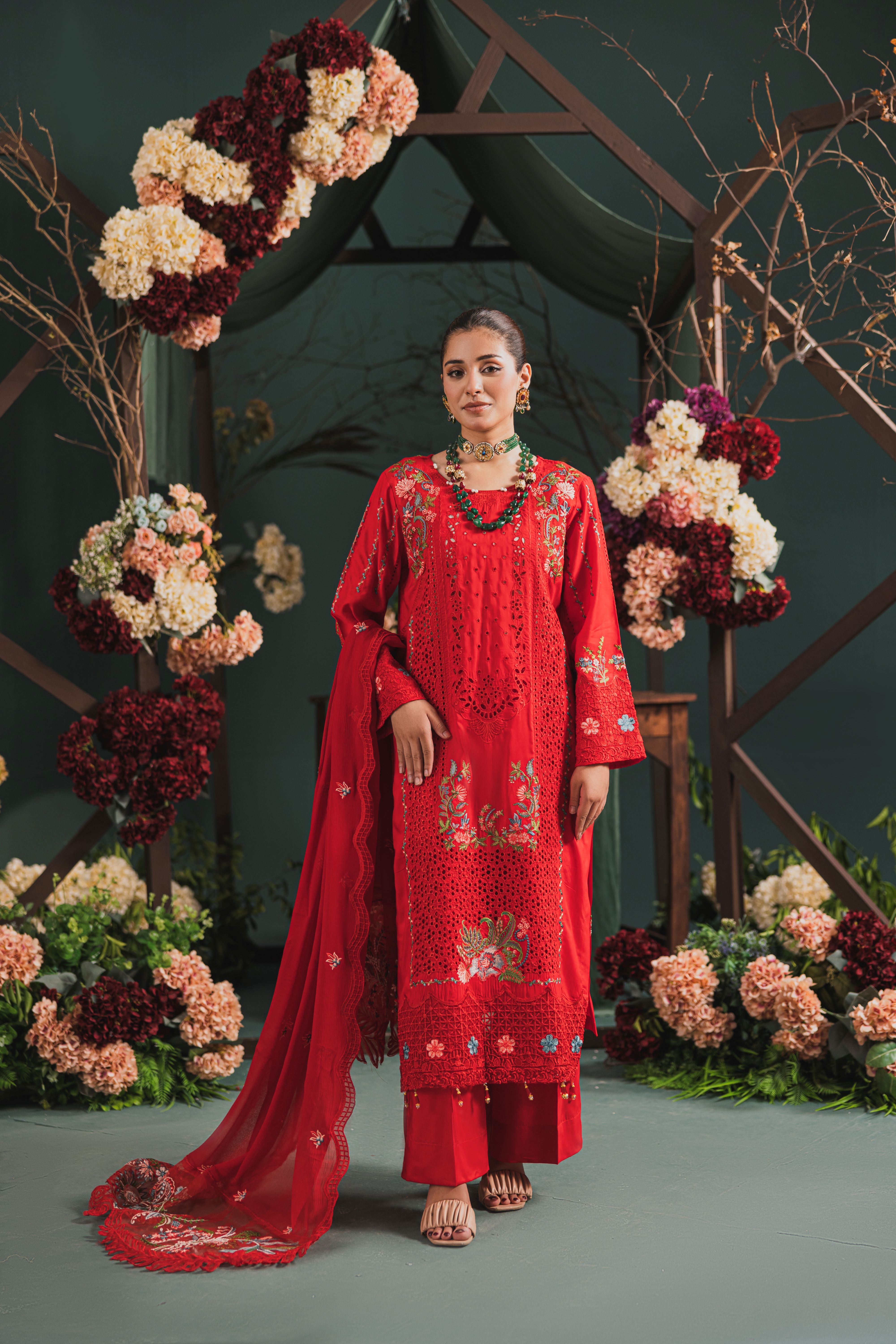 3 Piece Viscose Embroidery Fancy Suite