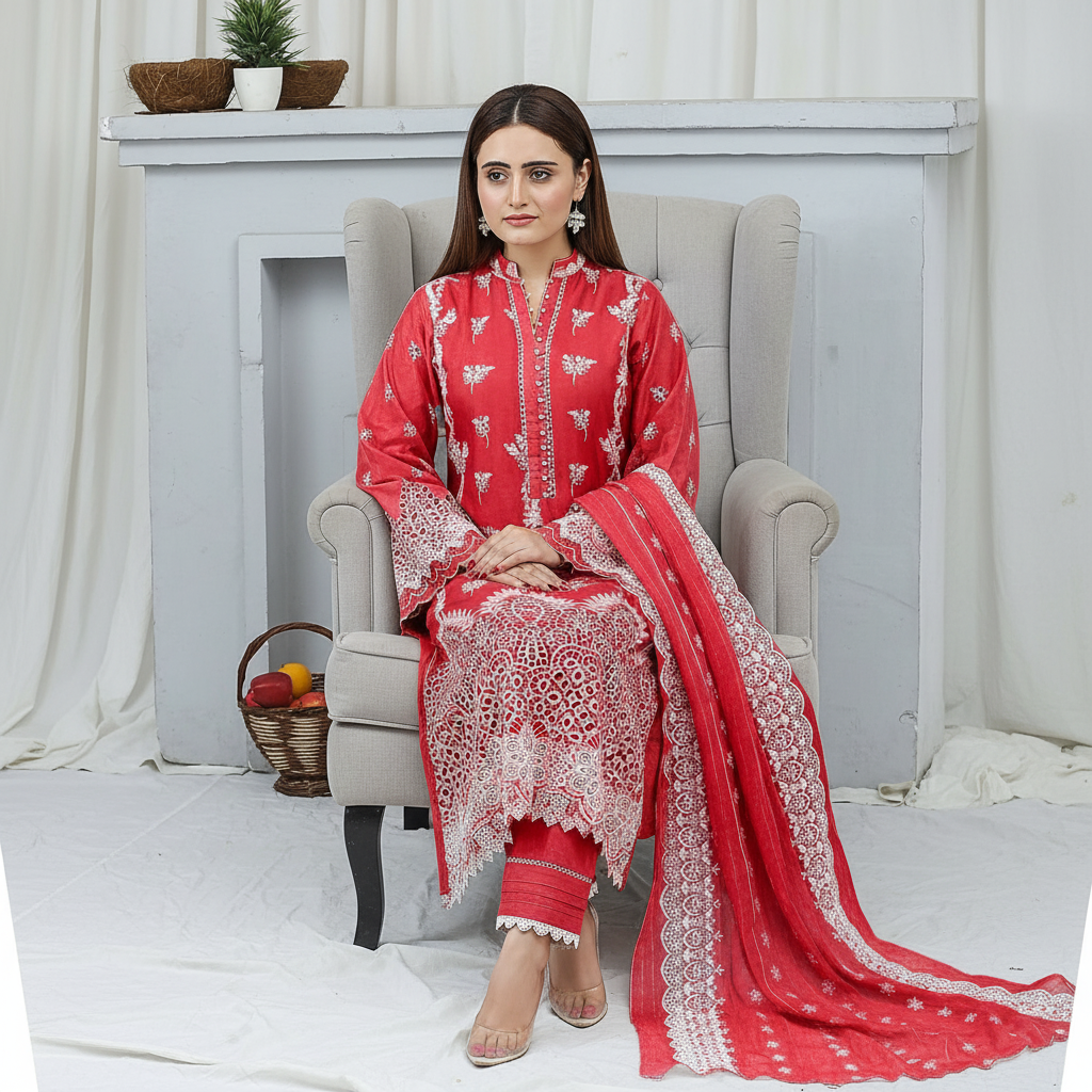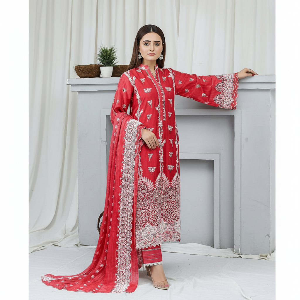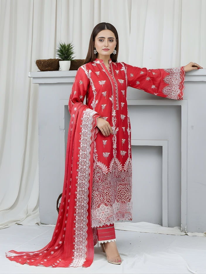 Unstiched Fancy Embroidered Lawn Shirt Front 3m