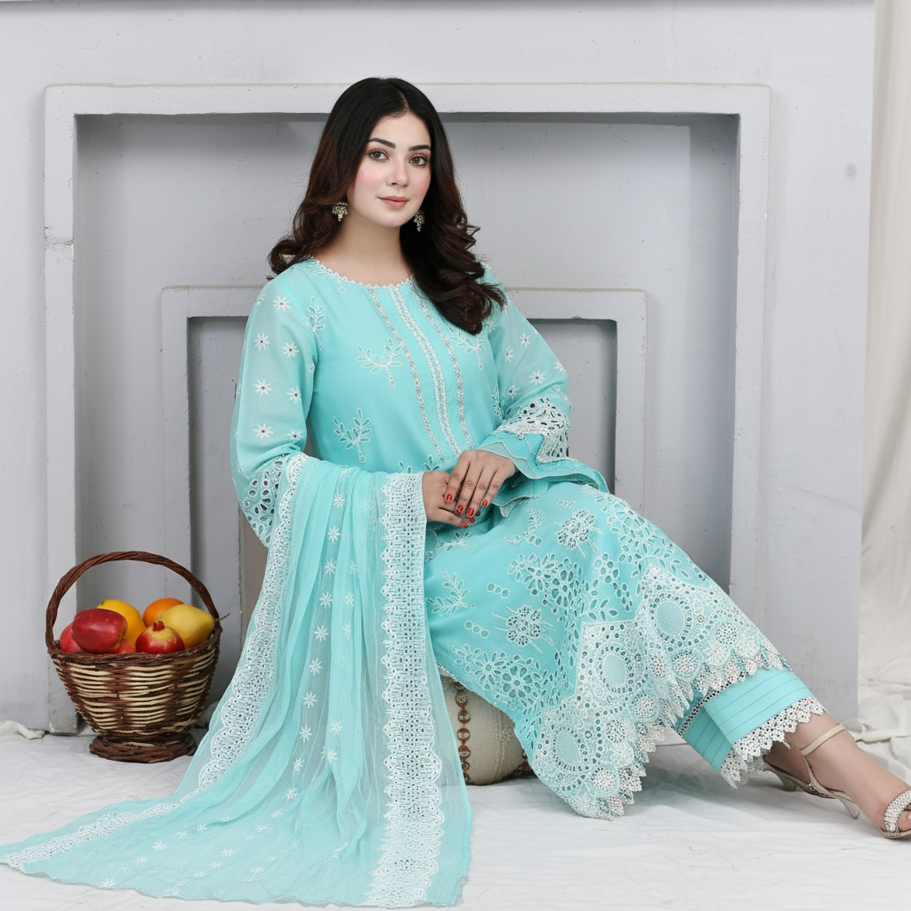Unstiched Luxury Embroidered Pure Bambre Chiffon Dupatta 2.5m